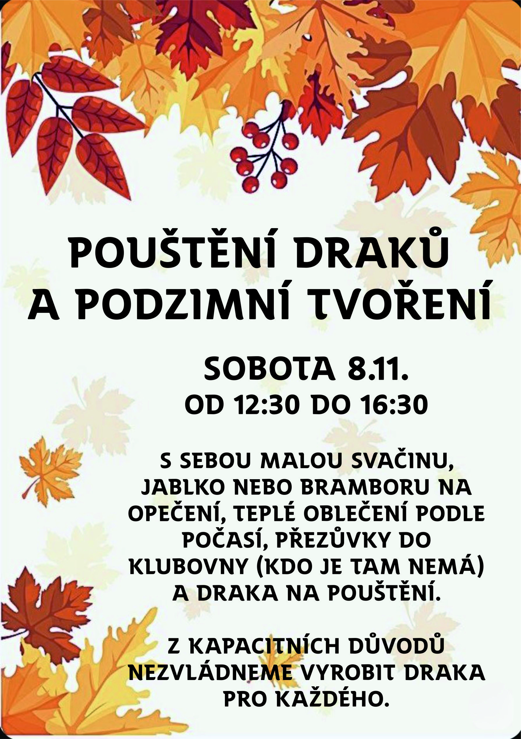 Akce se koná u skautské klubovny. Večer zakončíme promítáním filmu pod širým nebem.